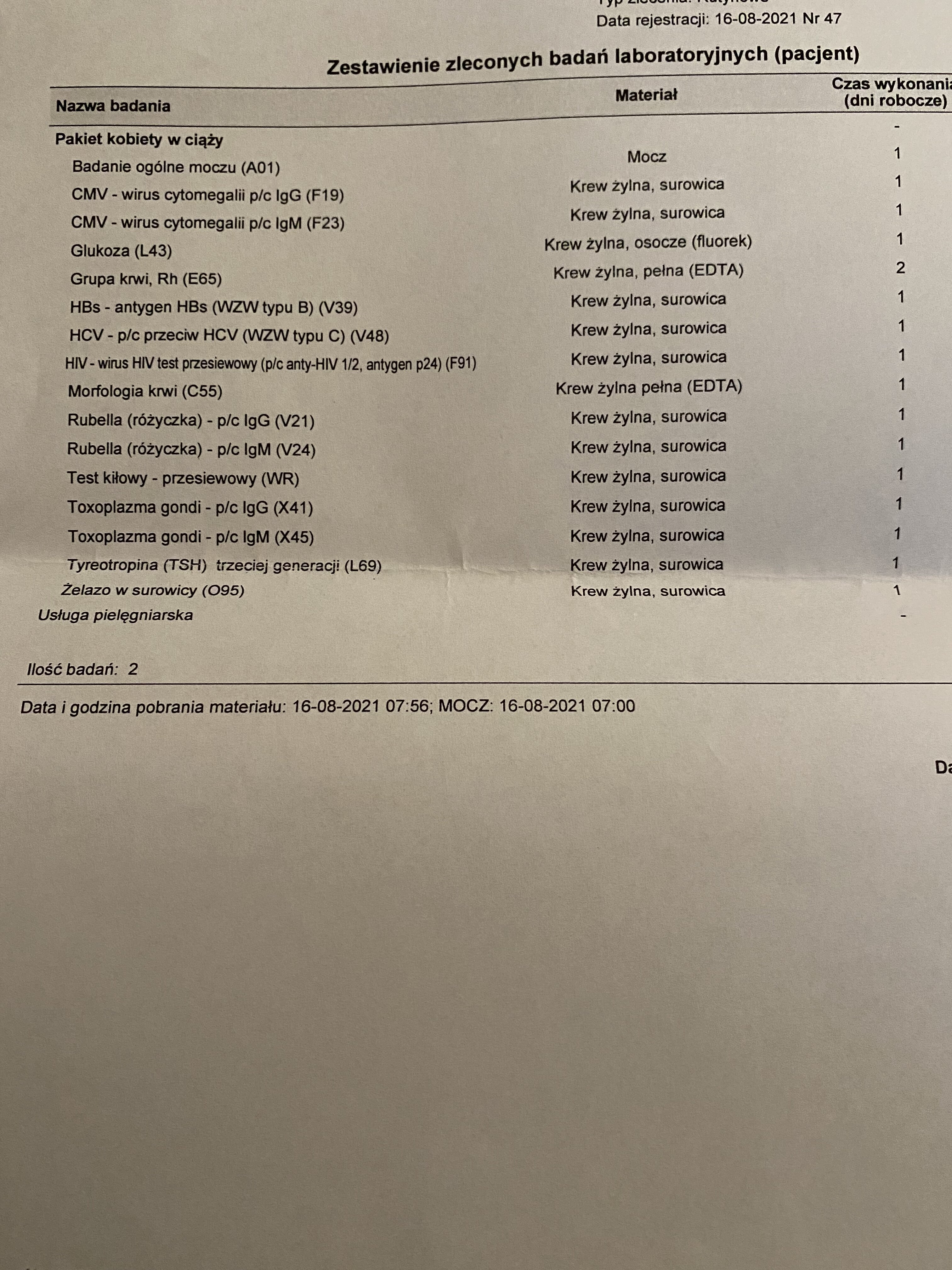 mam zlecony pakiet badań, na ten moment mam brać tylko kwas foliowy