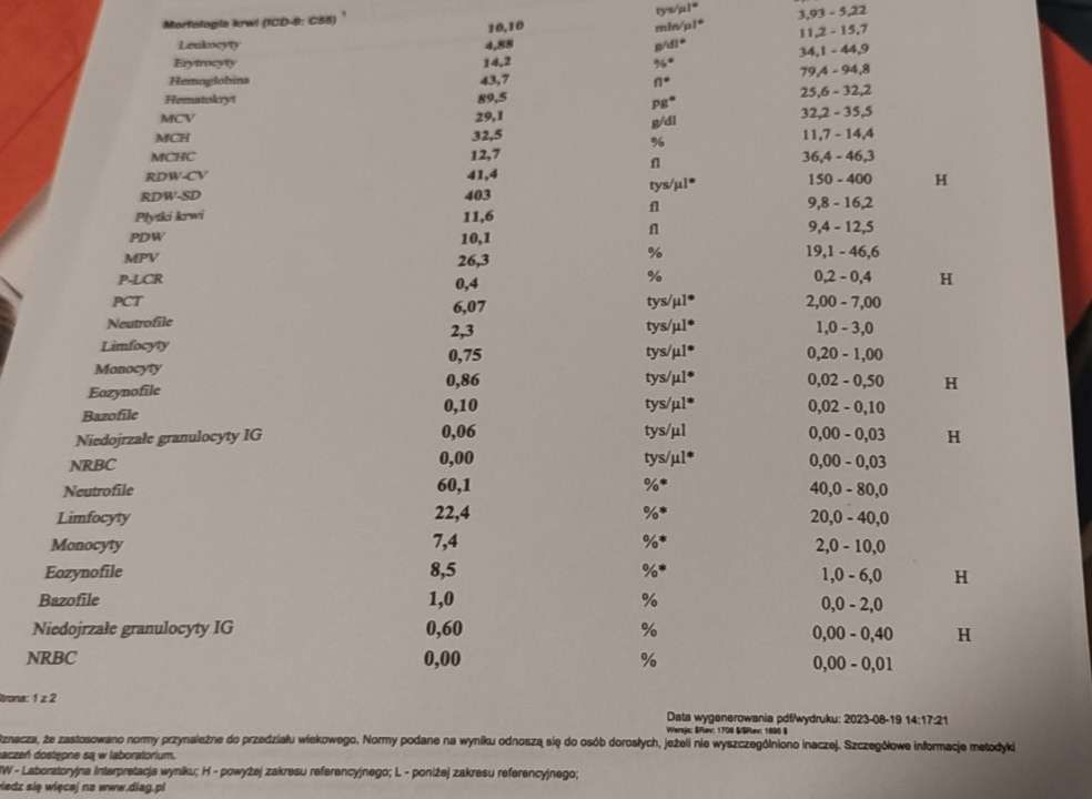 u mnie norma przekroczona dwukrotnie, ale lekarz widział i nic nie zwrócił uwagi.Dziewczyny a jak wasza morfologia ? Może mi któraś wytłumaczyć co to są te niedojrzałe granulocyty ? Czy one zawsze w pełnej morfologii wychodzą ? Czytam w necie i głupieje