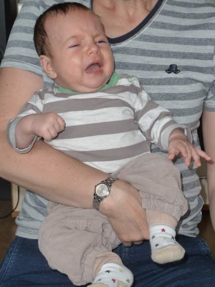 Baby - mój też lewą ma słabszą, odpowiednie noszenie nam zaleciła i układanie na brzuszku, tzw. kołyska, dwa zdjęcia pogladowe i mój płaczący Wojtuś :-) P1100519.jpgP1100520.jpg