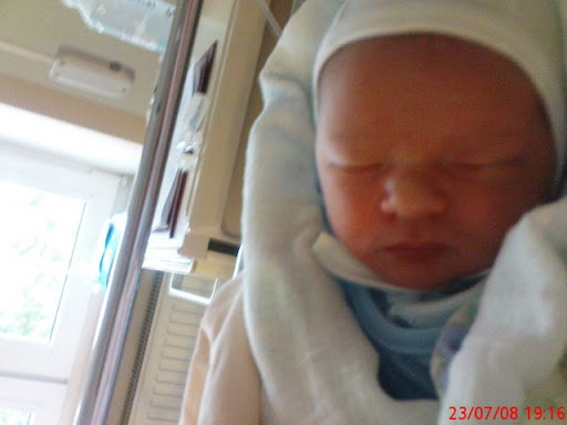 Szymek urodził się na pograniczu wcześniactwa - 36 tc (po 10 tyg mojego leżenia na patologii ciąży z powodu Vasa Previa). Była to planowa cesarka - lekarze nie chcieli już dłużej czekać... Urodził się duży - 3080 g, 51 cm - czyli jak takie mniejsze donoszone niemowlę. Nie był w inkubatorze - na szczęście było z nim wszystko w porządku :-) Tzn był - 48h w 7 i 8 dobie ale tylko na naświetlaniu (wysoka żółtaczka).
