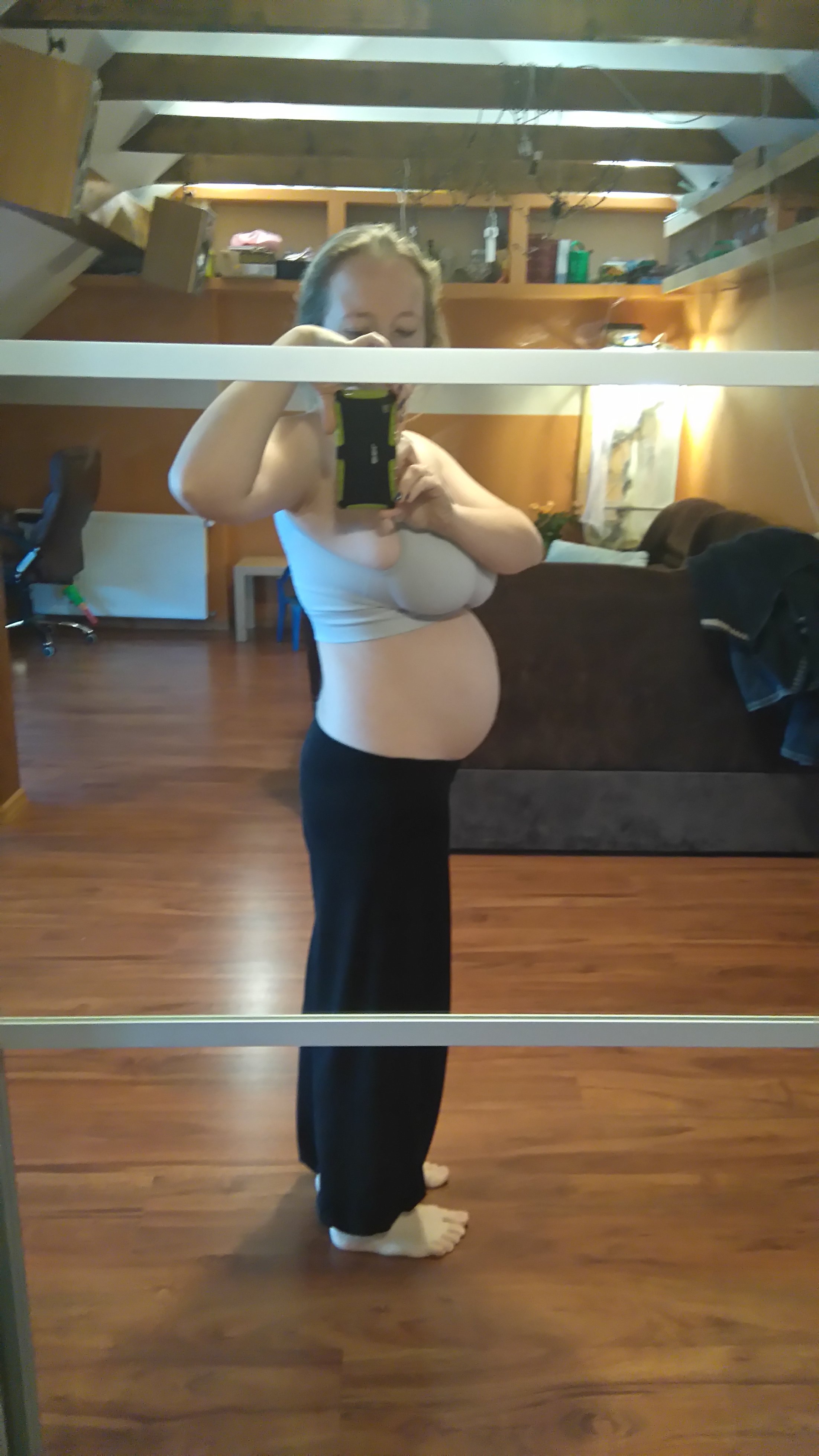 Wieczorami jest dużo większy maź mówi,ze ogólnie noe wyglądam jak w ciąży tylko jak bym się pożądanie najadła i miała gruby brzuch bo w porównaniu do tego co miałam przed ciąża jest już duża różnica i w obwodach i w wyglądzie np o 5,5kg na plusie