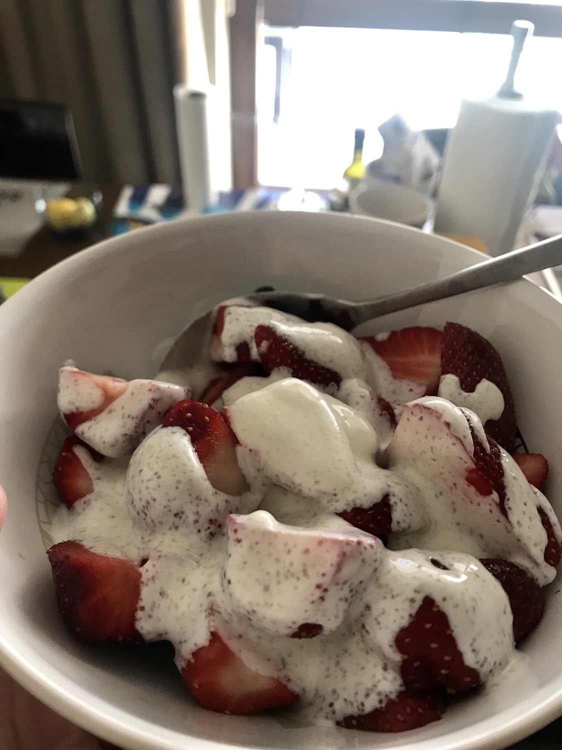 Idź się schowaj. Jeny teraz będę cierpiała na niezaspokojona ochotę na truskawki.