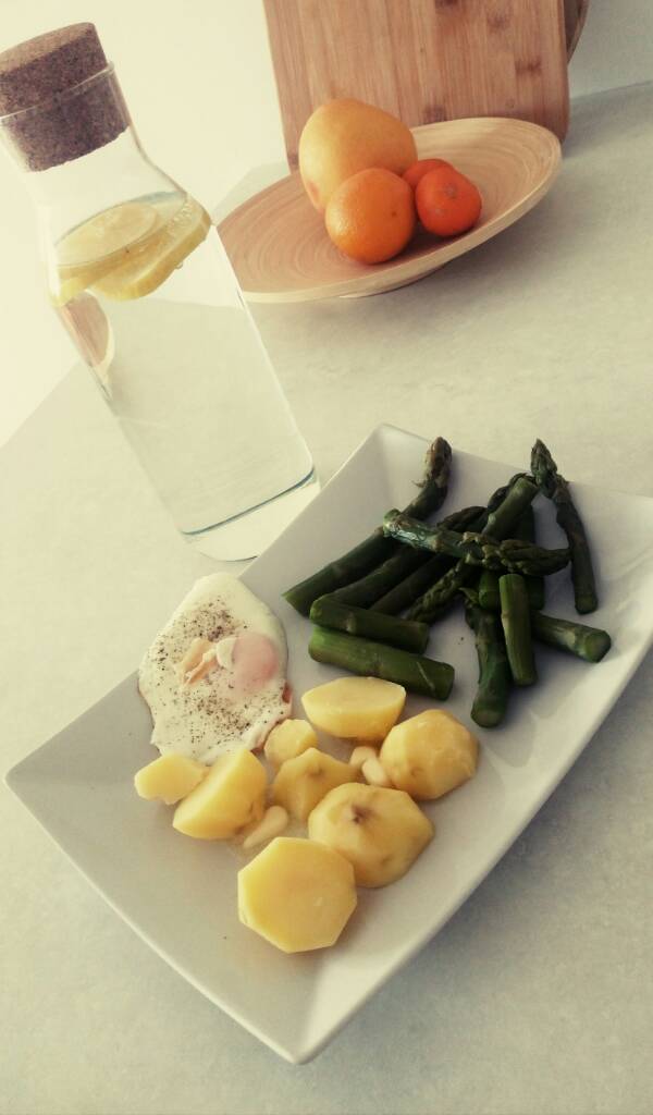 makaron z sosem śmietanowym ze szparagami, kolejnego dnia omlet ze szparagami a dziś to hehehe