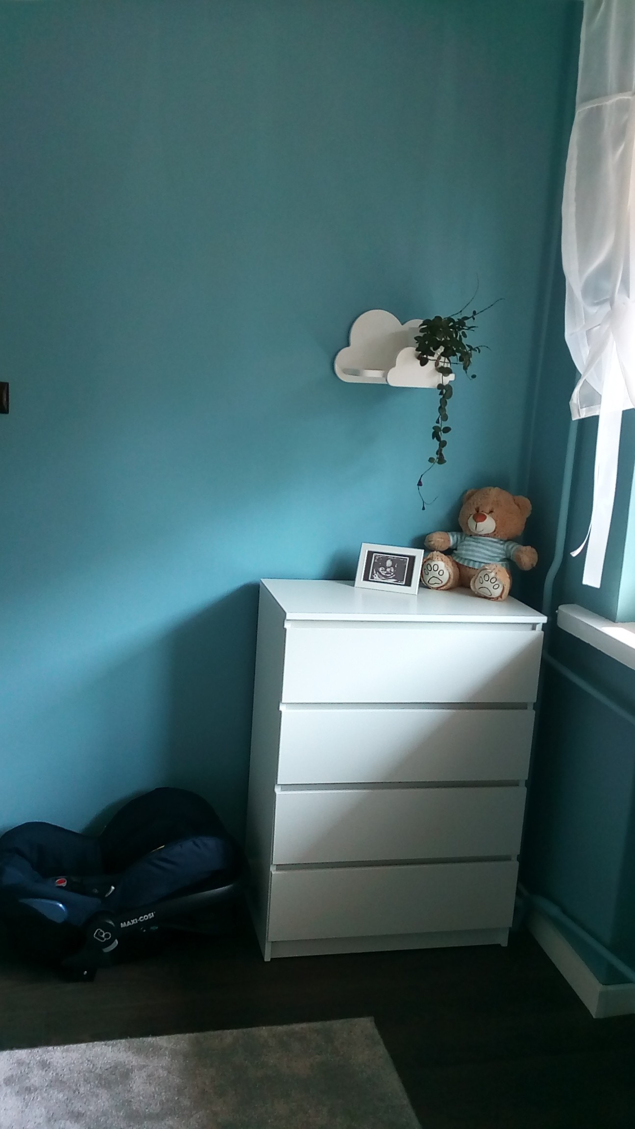 Jeszcze zastanawiam się czy nie postawić łóżeczka między drzwiami a małą komodą ale chyba póki co zostawię tak.