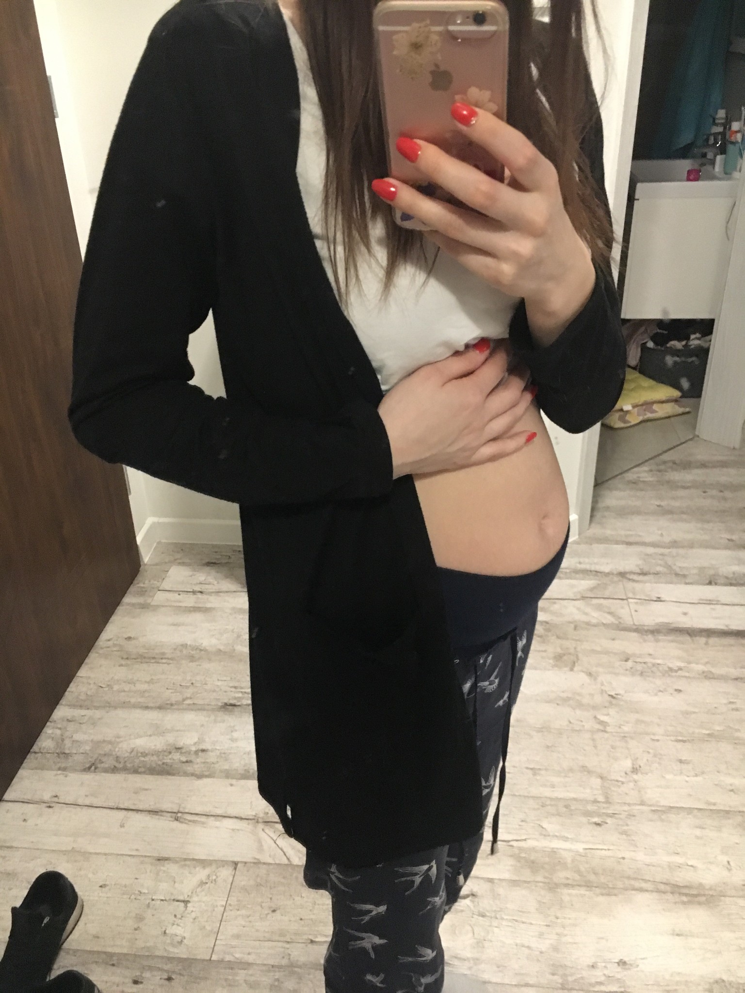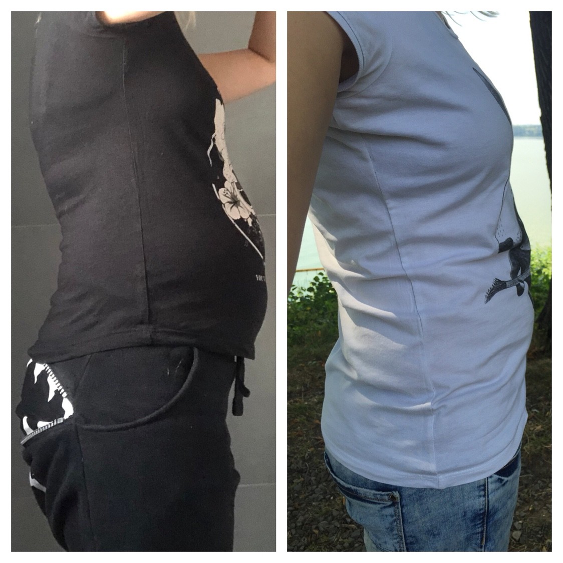 Brzuch sprzed 1,5tyg mniej więcej (w czarnym - w białym ten sam etap w pierwszej ciąży [emoji85])