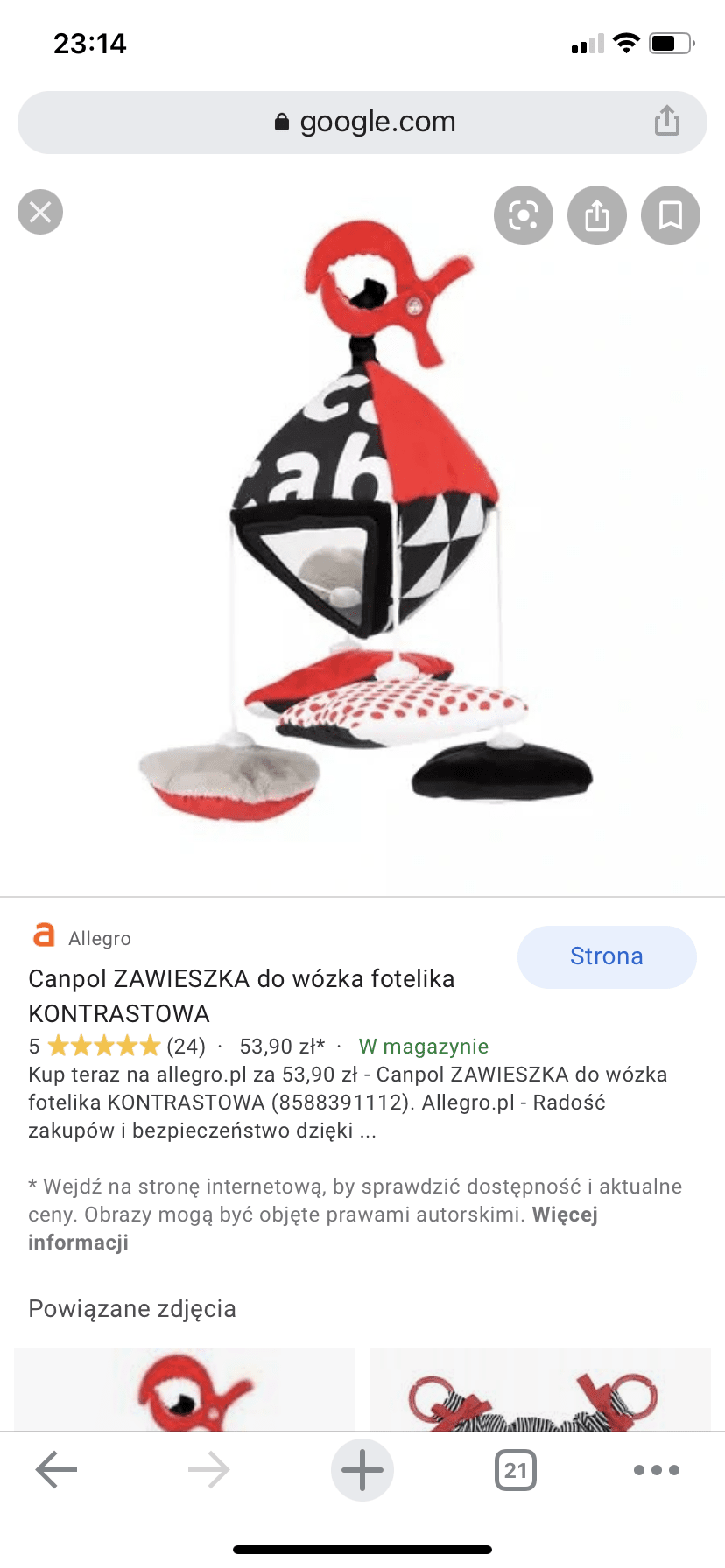 Tak, mamy i węża z grzechotkami i misia z klipsem i taką (bardzo polecam) zawieszkę z canpol kontrastową, bardzo zajmującajak już taki duży to chyba nie ma sensu. Jak lubi na macie łapać to chyba wystarczy. Bo jakoś wydaje mi się ze dzieci nie za długo interesuje jak coś się kręci. Nasza karuzela to tak pędzize małej nawet nie interesowało. Zlowie tempo normalnie. Zanim jej doszła kolejna zabawka to już jej nie interesowało. Bardziej światełko które się swieci na gorze. I zauważyłam ze jak jej zawieszę coś to łapie i się bawi. Tez tobie tak ze coś jej na szczebelki wieszam. Dostaliśmy ostatnio takiego jakby „węża” do owinięcia np na pałąk fotelika i ma tam jakieś grzechotki itp to czasem w dzień jej oplatam na łóżeczko ( bo w nocy jak walnęła w grzechotkę to myślałam ze zawału dostane i od razu byłam na równych nogach co to!
