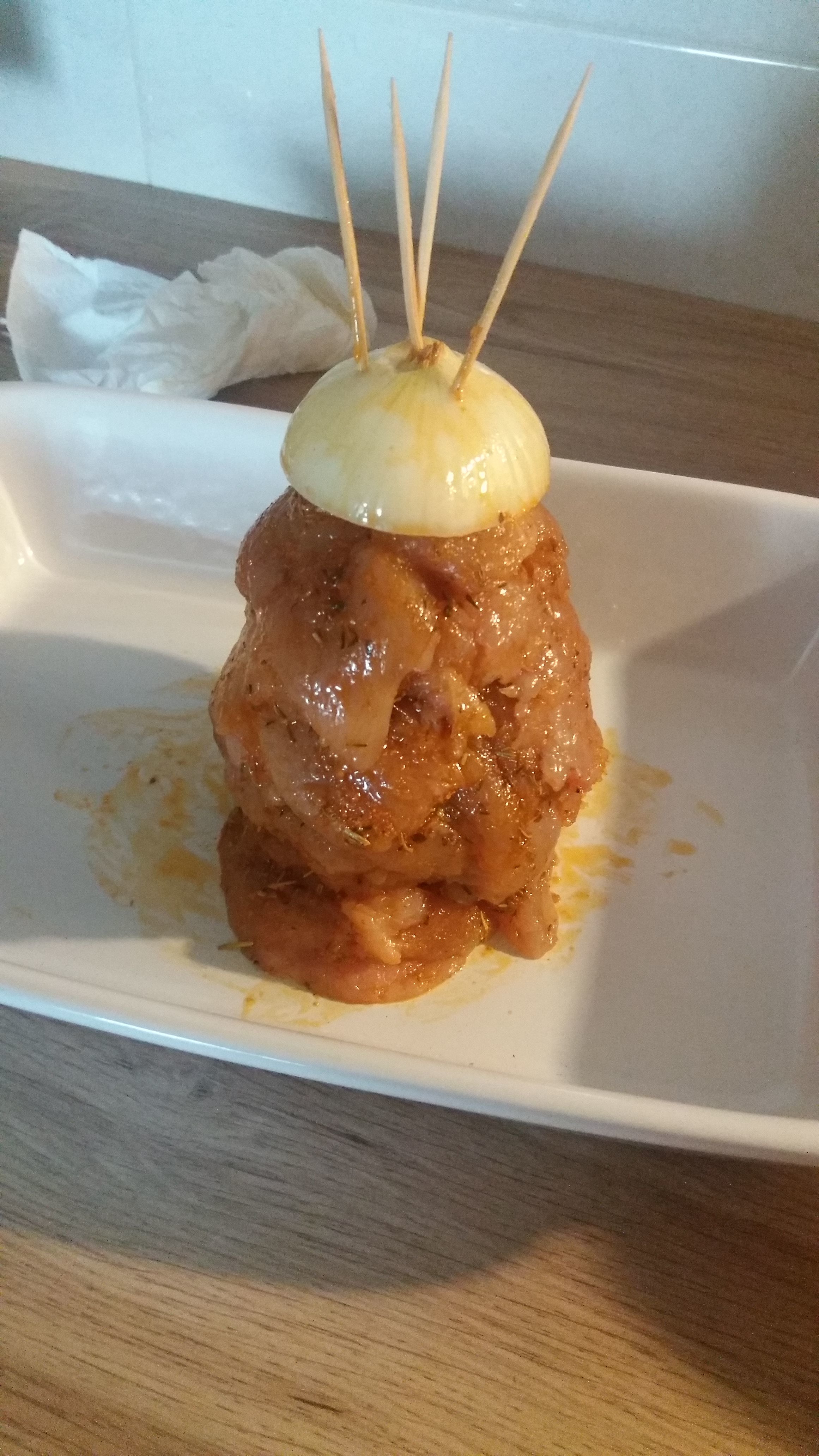 Jutro koniecznie na obiadPytasz o kebaba? Piersi z kurczaka pokrój pod kątem w plastry i upij jak na kotlety . U nas na 3 os wystarczy nie cały kg piersi. Przyprawą do kebaba wymieszaną z oliwą optocz każdy plaster i odkladaj jeden na drugim. Przekrój cebulę na pół . Wbij 3 patyczki od szaszlyków. Jedna połówka cebuli to taki stelaż na który nabijasz plaster po plasterku. Na sam koniec nabijasz 2 połówkę celubi , która najlepiej przykryć kawałkiem foli alum. I do piekarnika180 stopni na ok 1h . Potem pokrój nożem od góry do dołu . Ja kupije taki chleb z auchan w kształcie kwadratu i kroje na ukos . Wydlubuje ze środka wszystko. Sos czosnkowy na bazie jogurtu greckiego. Ogórek, pomidor , czerwona kapusta ( surówka) i gotowe. Nie mam foty jak wygląda w bułce, ale mam jak wygląda w piecu i na talerzu z frytami.![]()