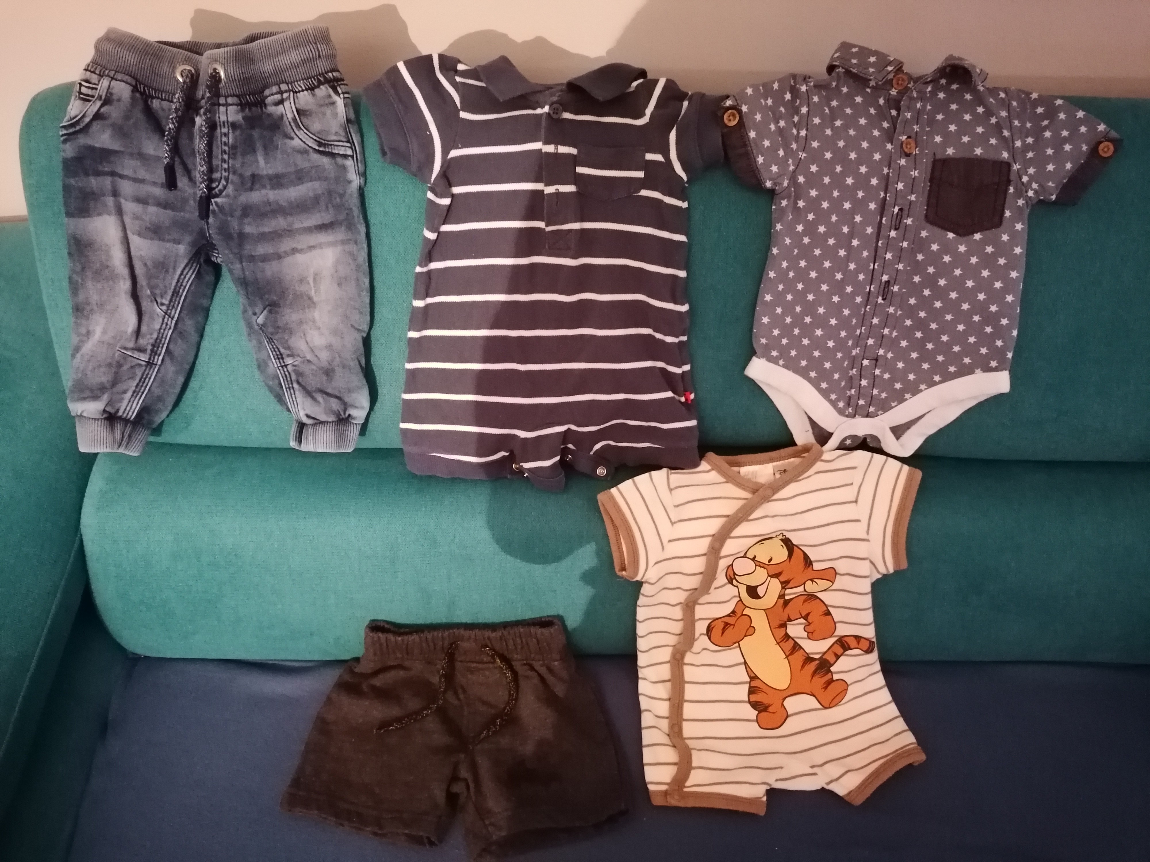 do staliśmy ubranka głównie chłopięce, czyli de facto takie uniwersalne płciowo i stonowane i postanowiłam zaszaleć z różem, myszką miki i kwiatkami, żeby było coś bardziej tendencyjnego dla dziewczynki, sama jestem czwartym dzieckiem i mam jakiś defekt chodzenia całe dziecińswto w ciuchach po starszej siostrze