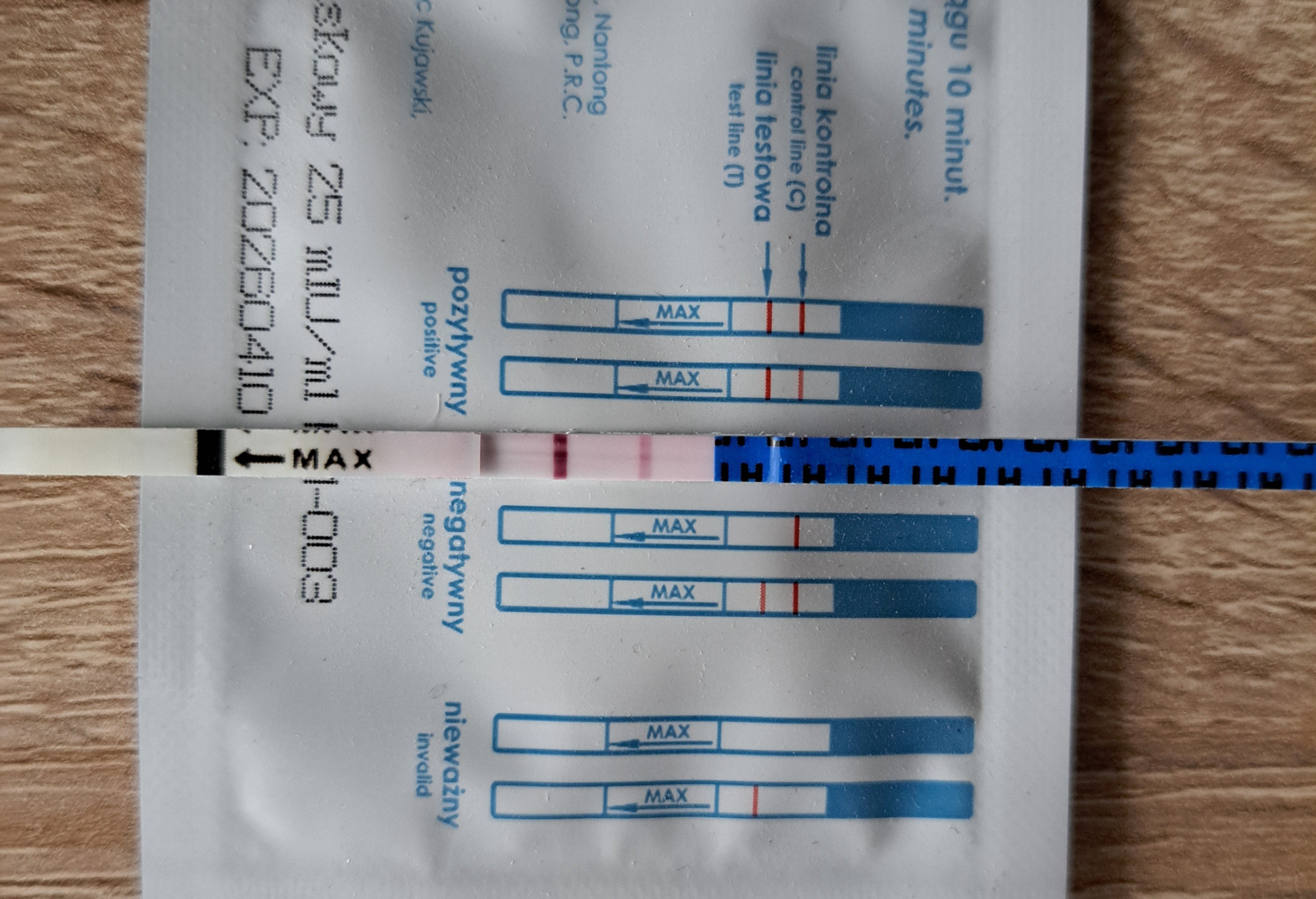 znalazłam stary test owulacyjny i oczywiście zrobilam w ramach eksperymentu, bo krążą informacje, że niby w ciązy owulaki wychodzą pozytywne.... I patrzcie, nigdy w życiu nie widziałam tak mocnej bordowej kreski na teście owulacyjnym