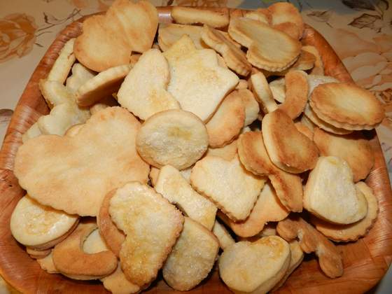 na koniec malujemy juz wyciete ciacha rozbitym jednym jajkiem i posypujemy drobno cukrem