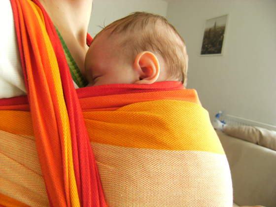 Wiąże się łatwo, trzyma dobrze. Mila zadowolona zaraz zasypia , czuję, że to dobry zakup. Wczoraj pytałam neurologa co mysli o chuście i powiedziała, że nie widzi przeciwskazan więc się chustujemy.