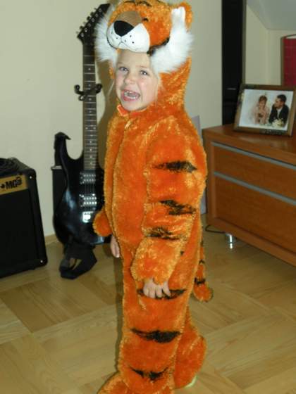 malutka już śpi, Kuba jeszcze bajkę ogląda, ale zaraz też do łóżka, bo ponoć dziś nie spał w p-lu, a jutro ma bal-będzie tygryskiem