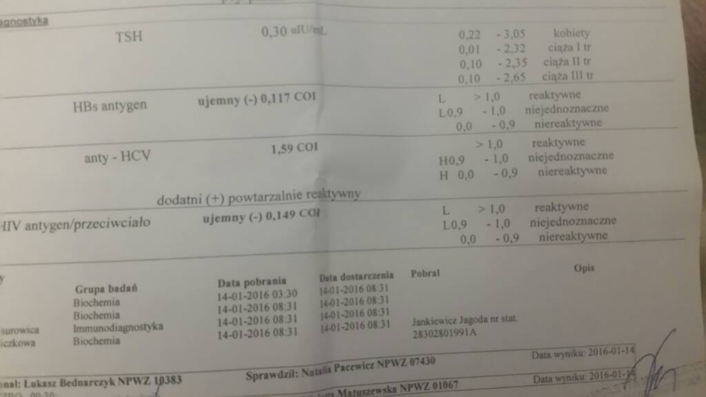 Mam drugi wynik jestem po 2 telefonicznych konsultacjach i w weekend powtórzę badanie w 2 różnych labolatoriacj innych niż do tej pory.