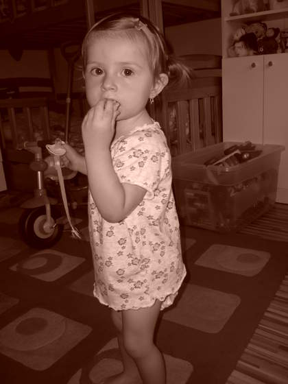 Za to pięknie mówi. Układa zdania już nawet czasami jej wychodzą 5wyrazowe. Jest bardzo przemądrzała i wszystko wymusza krzykiem.