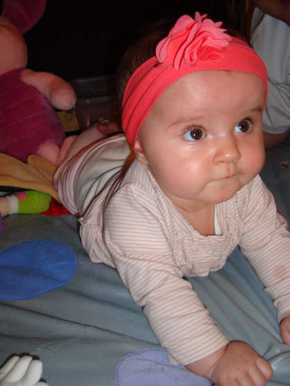 Za to moja mala akrobatka nie daje mi chwili spokoju, jak ja klade na mate to nie mija nawet minuta a ona juz na brzuszku, po chwili oczywiscie jest znudzona/zmeczona ale z powrotem jeszcze nie umie sie odwrocic i marudzi wiec musze do niej non stop latac, do tego jak jeszcze nie zdarzy przetrawic mleczka to ulewa mi i cala jest upackana. W lozeczku troche dluzej polezy na pleckach ale tez sie przekreca i to w obie strony. Dziewczyny musze wam powiedziec ze jestem z niej strasznie dumna, teoretycznie powinna byc ok 2 miesiace do tylu w porownaniu do zdrowych dzieci a ona radzi sobie rewelacyjnie, nawet nie wiecie jakie to jest budujace, mam nadzieje ze nadal bedzie tak sobie dzielnie radzic. Jedyny klopot z tymi jej akrobacjami jest taki ze woreczek czesto nam przecieka i czasami musimy go zmieniac nawet 2 razy dziennie a kiedys to bylo raz na dwa dni, ale damy sobie z tym rade, wazne zeby sie fajnie rozwijala.