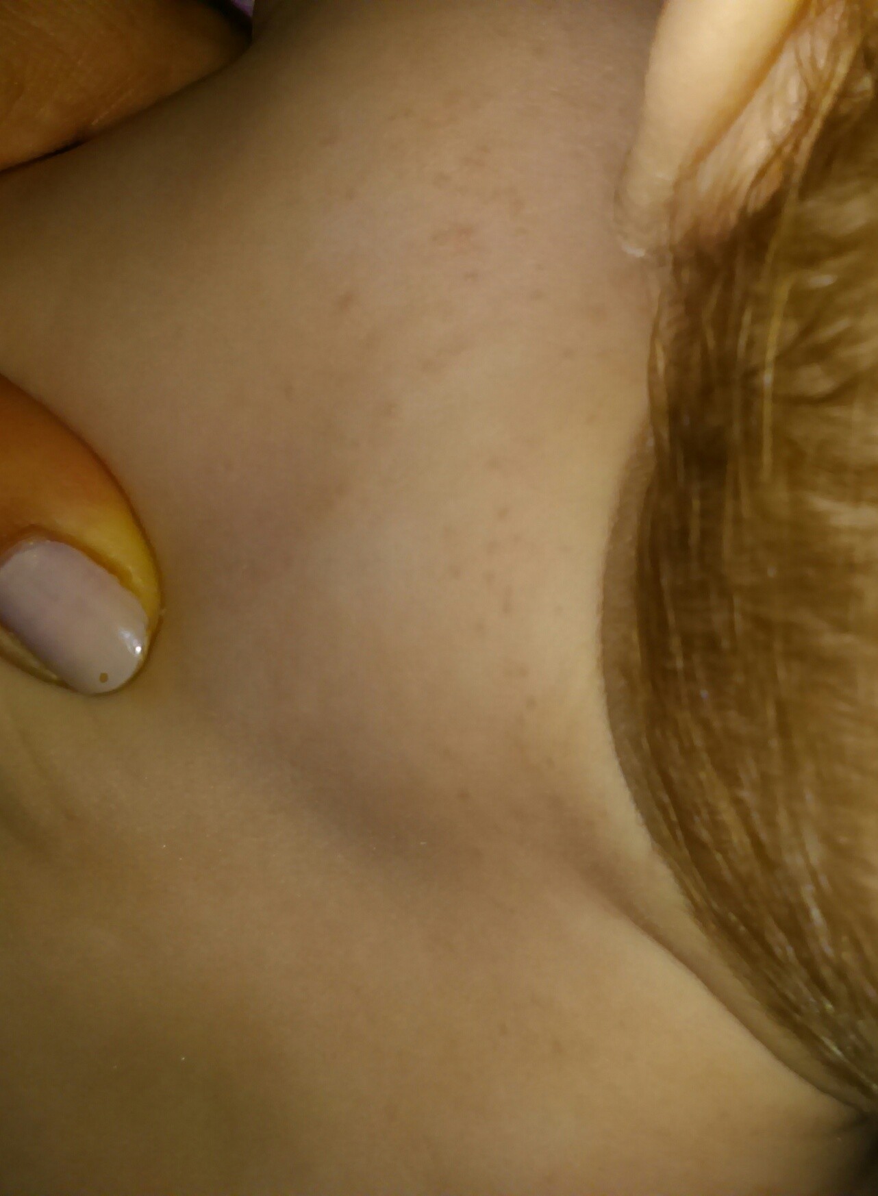 Są delikatnie różowe, lekko wyczuwalne, taka delikatna kaszka. Na zdjęciu wyszły jakieś ciemne. Jak myślicie Uczulenie, potowki? Poczekam i pójdę do lekarza