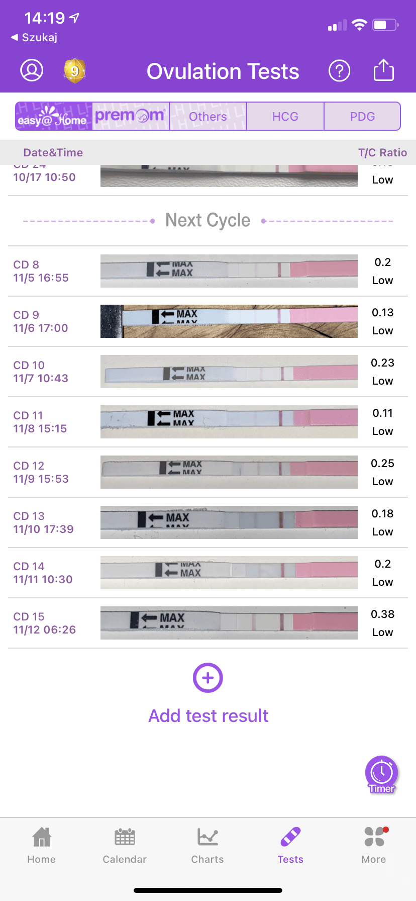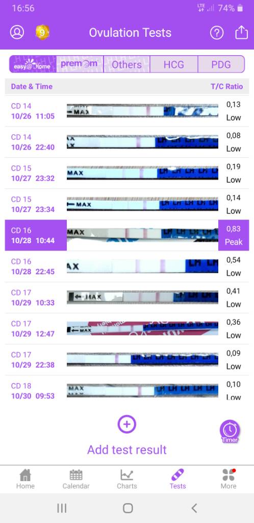 Oj chyba niekoniecznie musi być wartość 1 lub więcej by test był pozytywny. Tak wyglądały moje testy z ostatniego cyklu To był mój pierwszy cykl z testami i ta aplikacja, właśnie mam 2cykl kolejnego cyklu starań i mam pytań, jak skończy mi się okres będę robic test owu ponownie, po dodaniu zdjęcia pierwszego z nowego cyklu te zdjęcia z poprzedniego będą dalej widoczne? Jeśli tak to lepiej je skasować?Zobacz załącznik 1200534