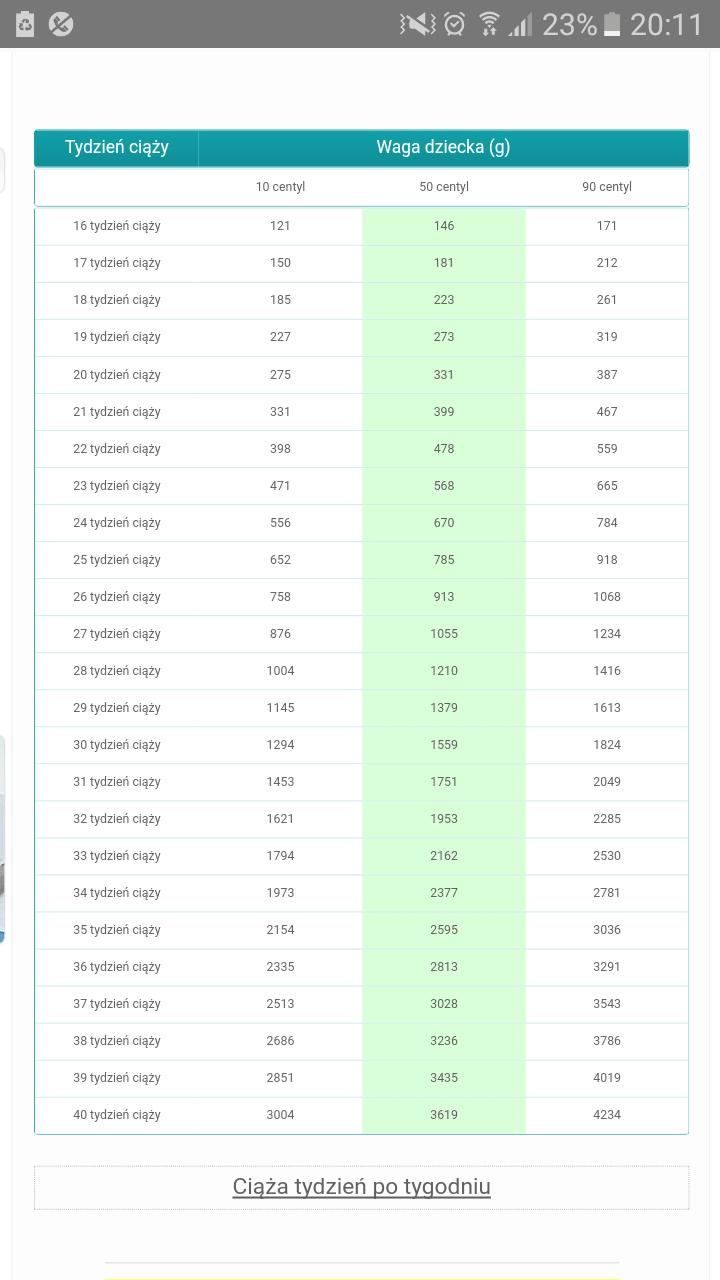 Spójrz na normy jakie wrzuciłam. Poza tym żadne usg nie jest w stanie przewidzieć ile dziecko będzie ważyłoNo wlasnieb jak to jest, ja mialam USG 24 lipca to byl moj 22 tydz i mala wazyla juz 500 gr. Lekarz powiedzial ze szybko przybiera na wadze, bo na tym etapie nie powinna przekraczac 450 gr i ze jak tak dalej pojdzie to urodze jakiegos kolosa. Troche sie przestraszylam, nastawilam sie na naturalny porod ale boje sie ze moja mala kruszynka okaze sie ponad 4 kg klockem,heheheh
