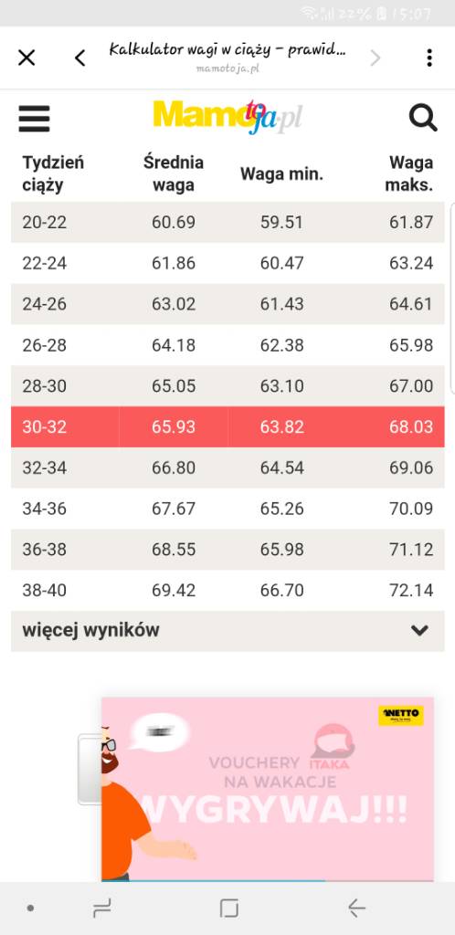 Mi wychodzi ze jestem na granicy minimalnej wagi [emoji848]Kobitki a ja znalazłam kalkulator wagi w ciąży, dla tych co za bardzo panikują z wagą [emoji14]