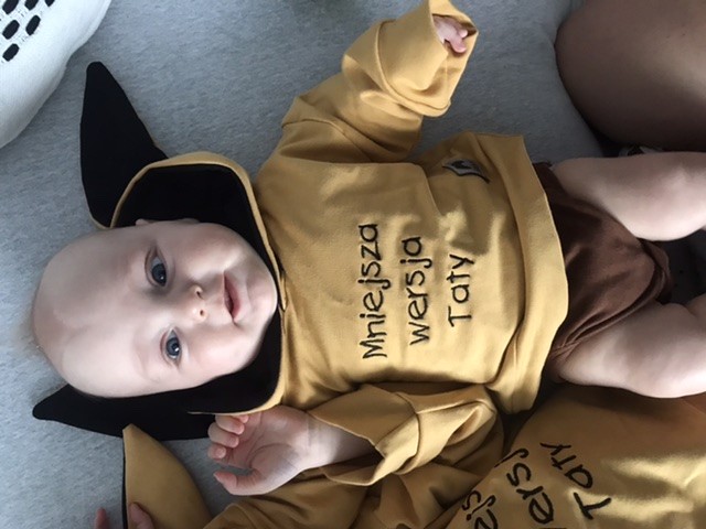 Na brzuchu nie lubi, polezy max 10 minut, wtedy głowę trzyma ładnie, rozgląda się w każdą stronę. Widzę też że jak kopie nóżkami w leżeniu na plecach to zaczyna pupę do góry podnosić delikatnie.