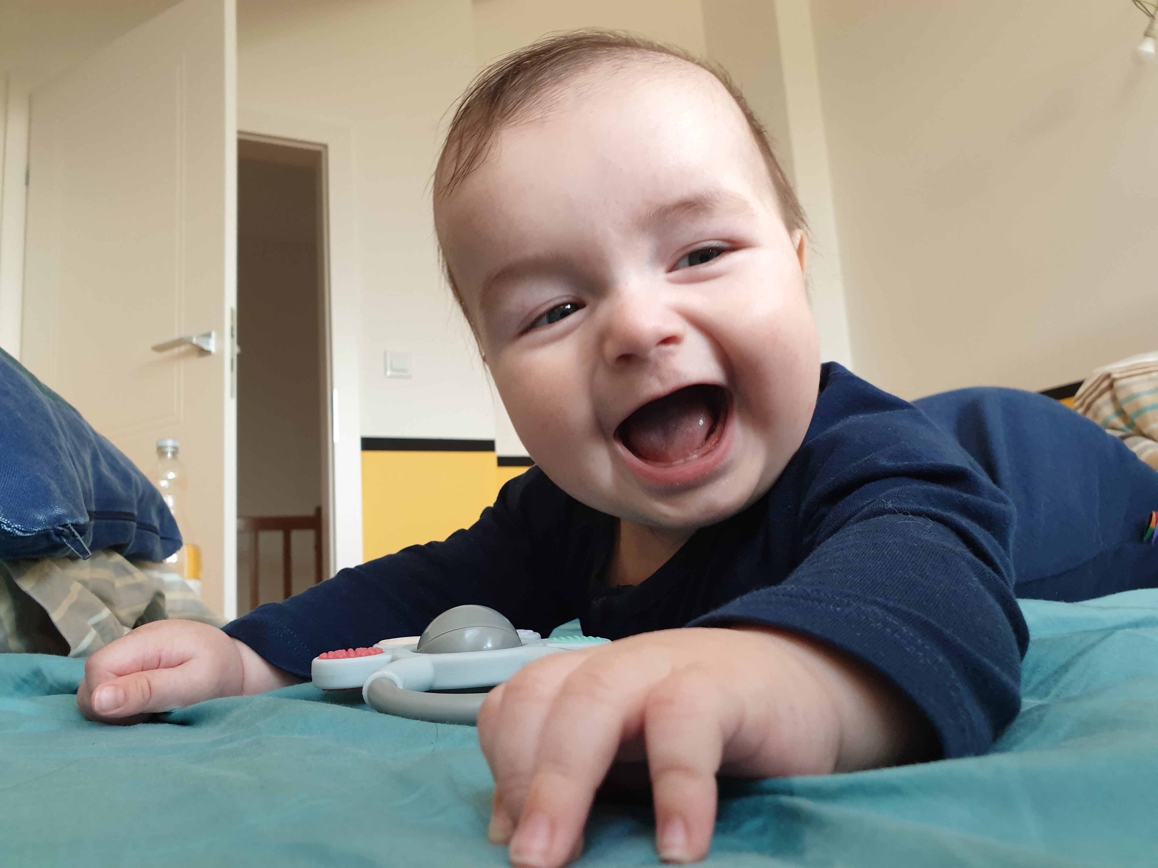 My tylko pierś. Butelka nie wchodzi w grę, mały ja bezczelnie gryzie z uśmiechem na twarzy