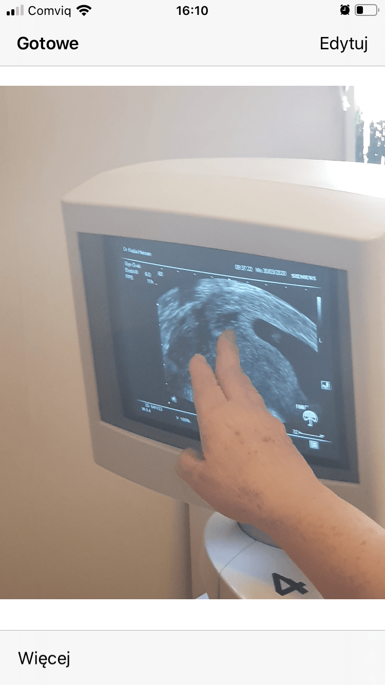 Na jednym szwedzkim forum dodałam następne zdjęcie które znalazłam s męża telefonie i tam dziewczyny teierdzą że to nie wyglonda jak puste jajo a przynajmniej z ciałkiem żółtym. Nieukrywam że daje mi to nadzieje. A ci wy myślicie? Co to może być co gin pokazuje palcem?