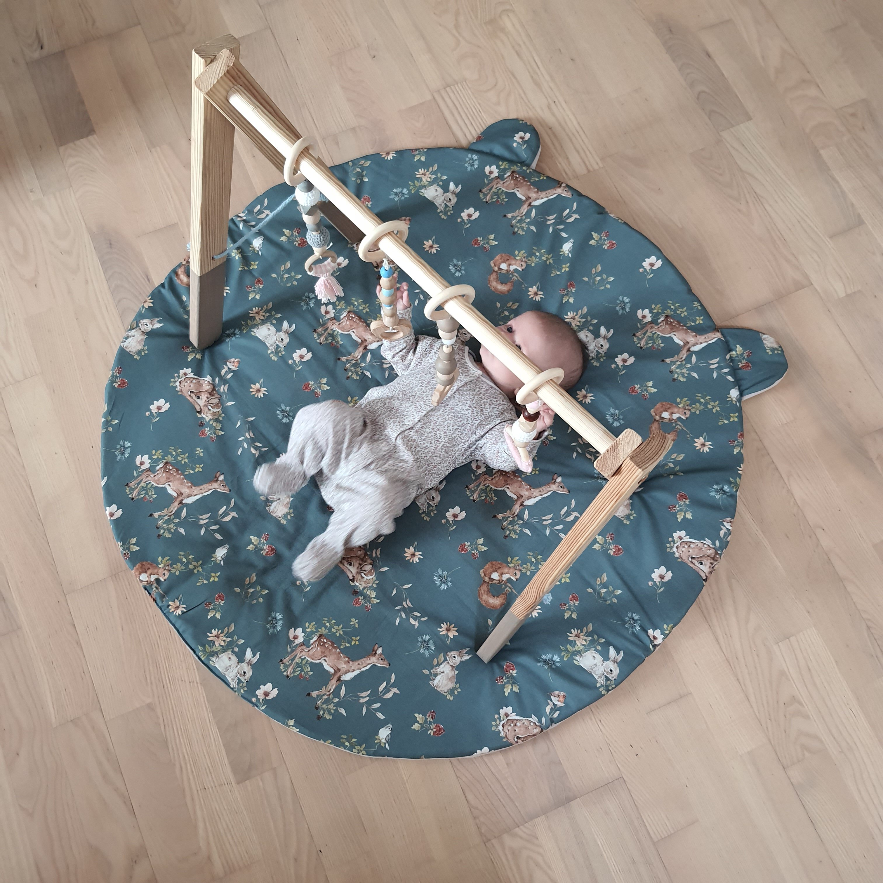 Babybym mężu robił, ja zawieszki. Bo mam dużo takich drewnianych kulek, ringów itp