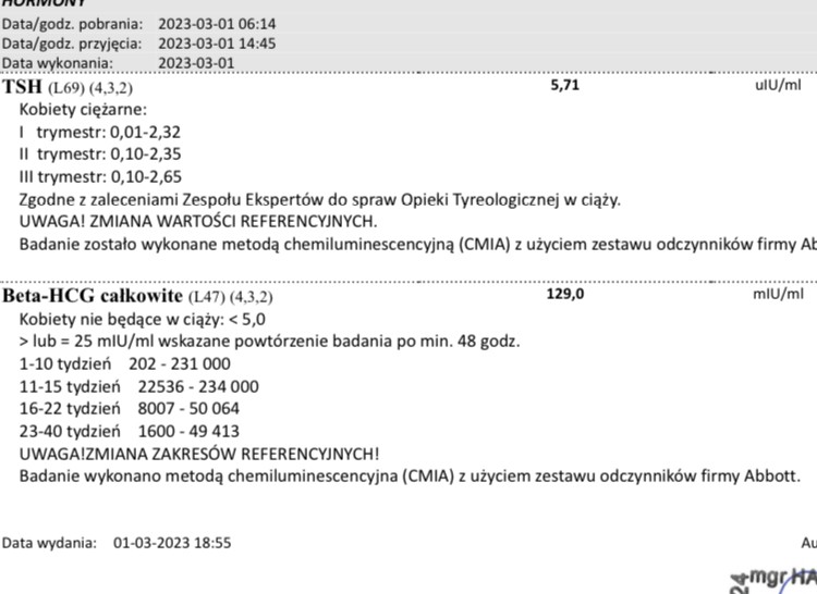Myśle, że najlepiej będzie jak zadzwonisz do lekarza. Wytłumaczy co widział i czy tak się zdarza.Niestety beta 4.82