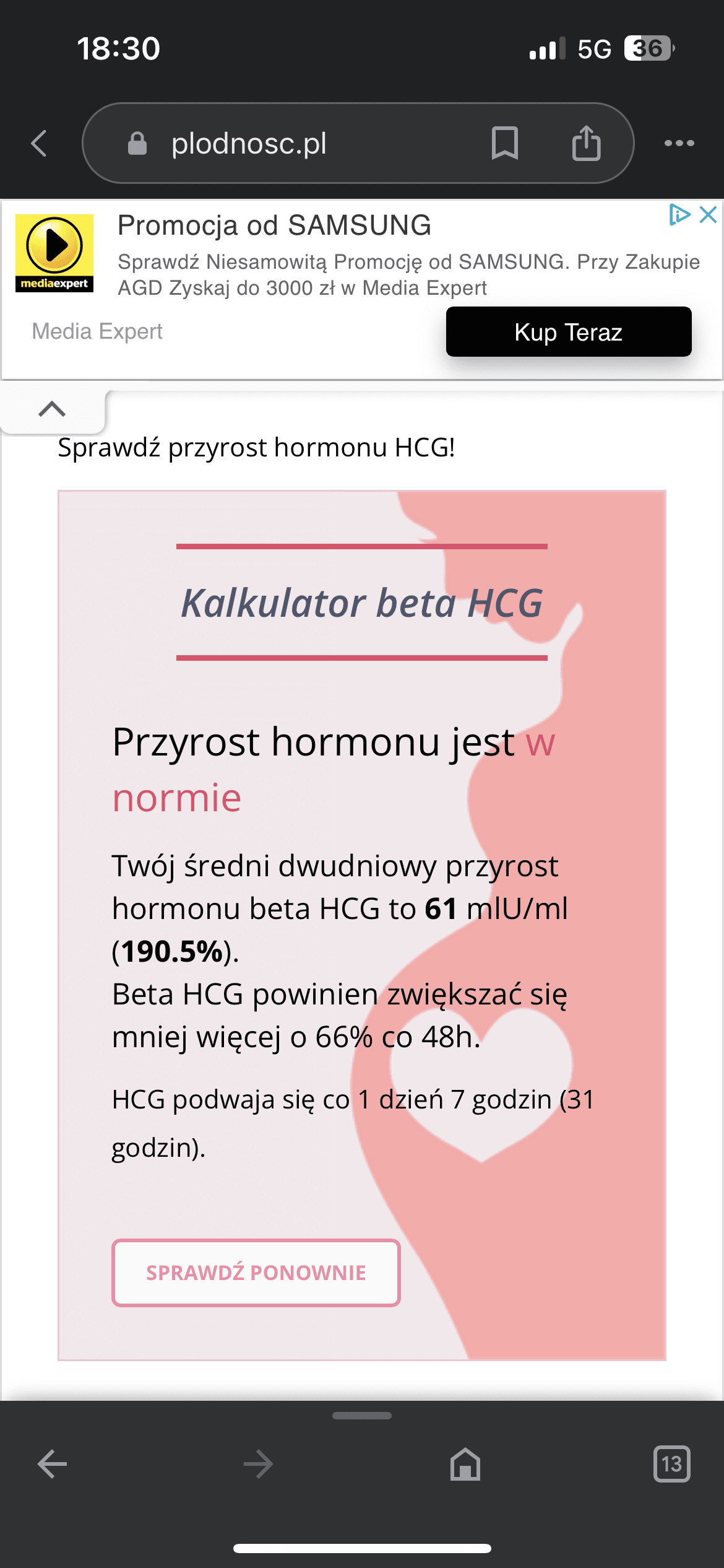 Ale w tej chwili robienie bety i sprawdzanie przyrostów nie ma sensu bo już nie przyrasta tak.jak na początku. Jest ok i tego się trzymaj.Kurka.