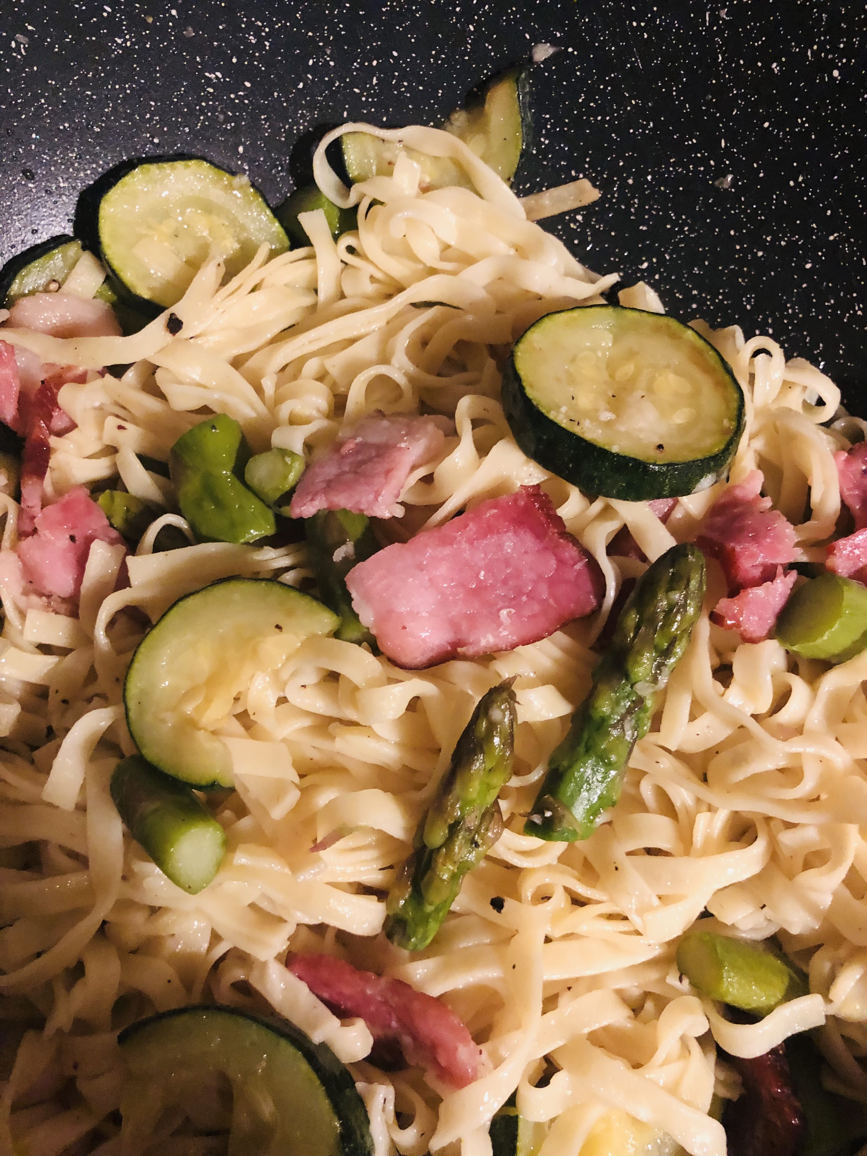 Na tagliatelle ze szparagami, cukinią i wędzonką z lokalnej masarni miałam po prostu chęć.