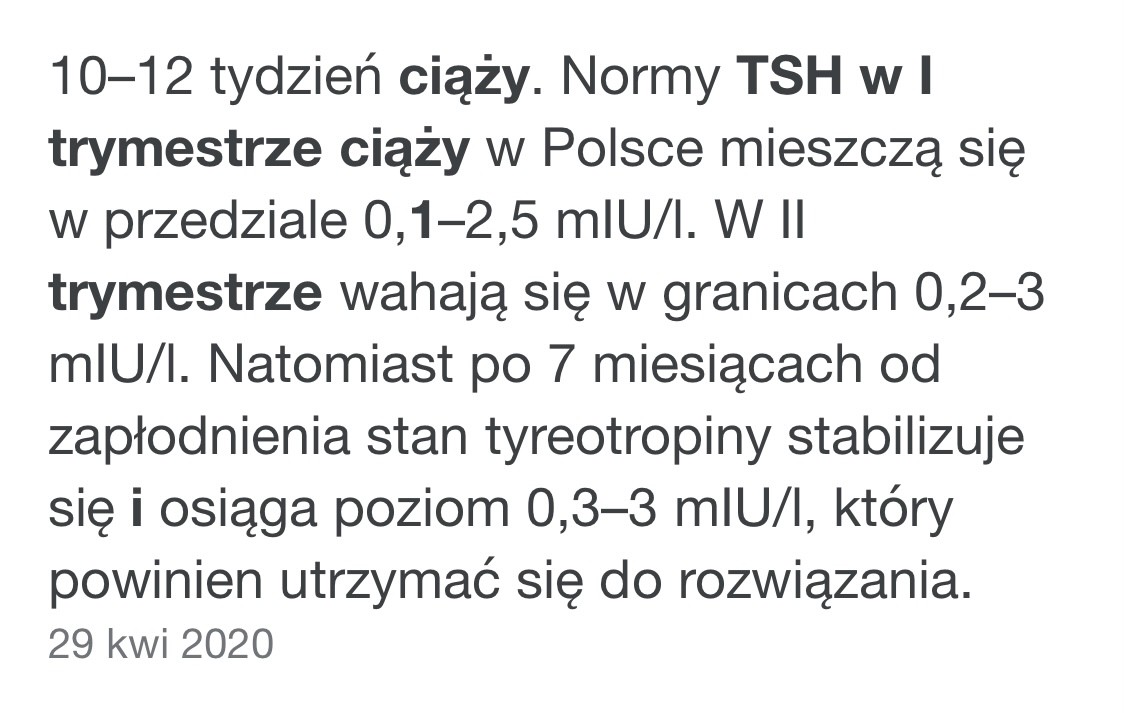 Mi lekarka internistka mówiła teraz że ok a mam 1.5 ale pamiętam w zeszłej ciąży miałam 1.2 i mój gin mówi że wolałby poniżej 1. Tyle że te standardy się zmieniają. Bta internistka mówiła że fizjologicznie w ciąży idzie się w niedoczynność.Myślisz że w trybie pilnym powinnam udać się do endokrynologa? Bo mimo że prywatnie to przynajmniej z 2 tyg bym czekała