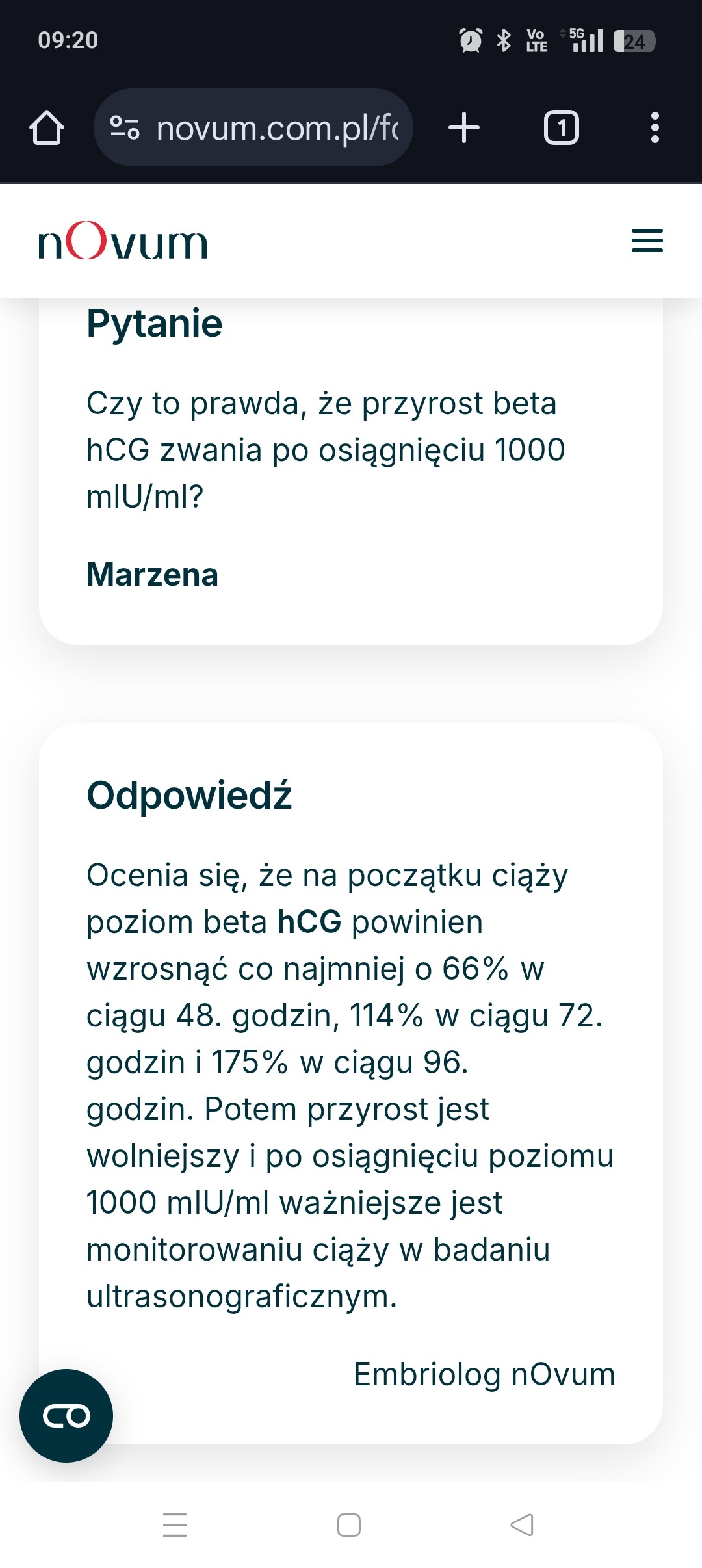dwa razy był nie prawidłowy przyrost w granicach 30-40% i dwa razy był to ciąża biochemiczna , obecnie jestem w 23 tygodniu zdrowej ciąży gdzie przyrosty były prawidłoweA jak to u ciebie się skończyło?