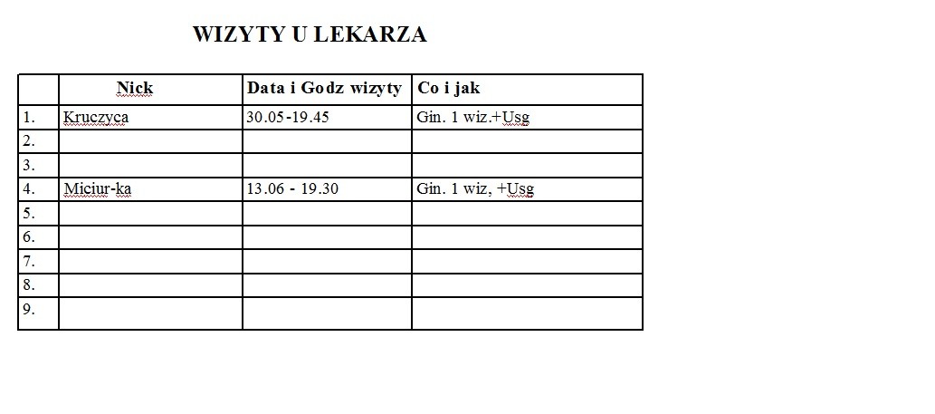 tabelka wizyt u lekarza - zostawilam miejsce bo pamietam ze ktos jest jeszcze przedemna tez