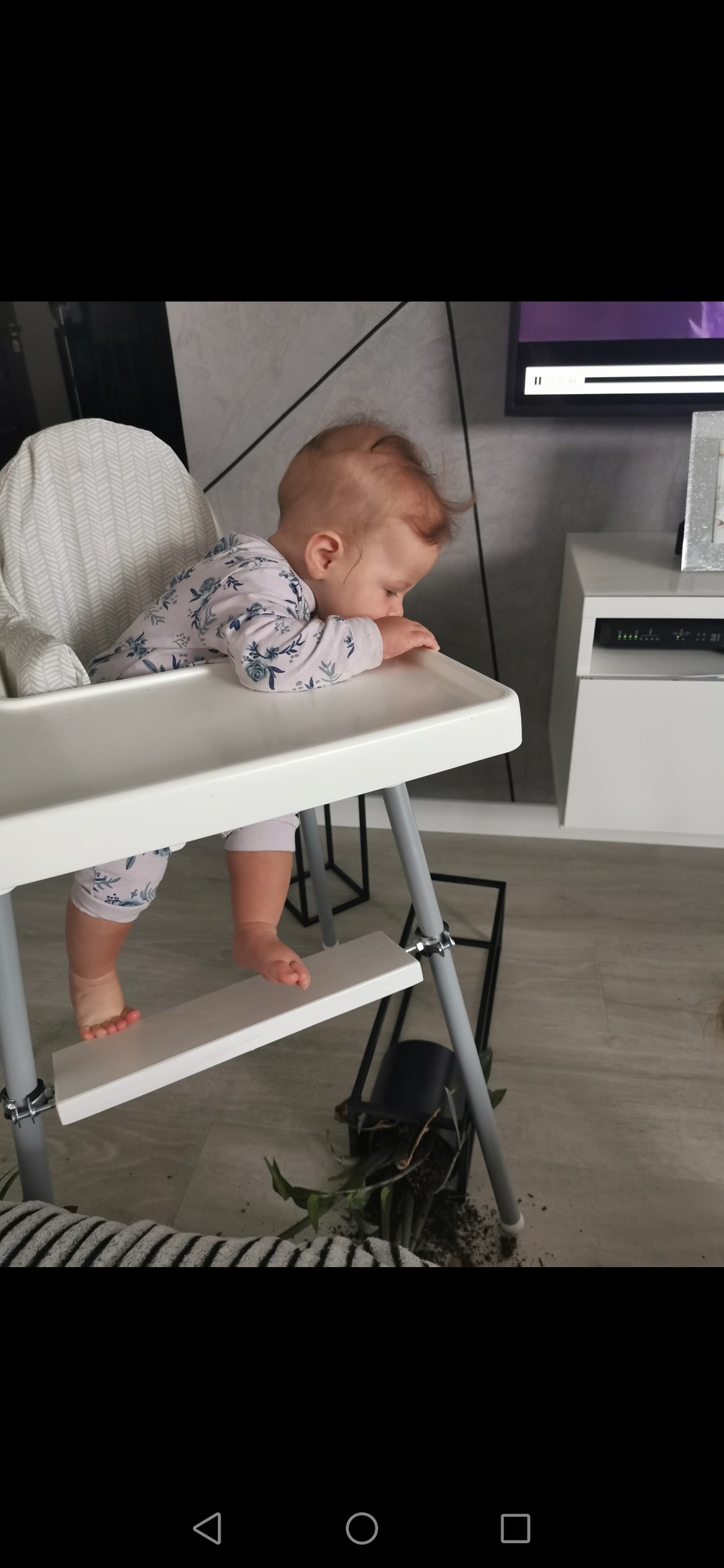 Oj kwiatek zniszczony a dziecko zadowoloneHania juz wszystko niszczy.... Rączką sobie pociągnęła kwiatka, i jeszcze się śmiała w głos