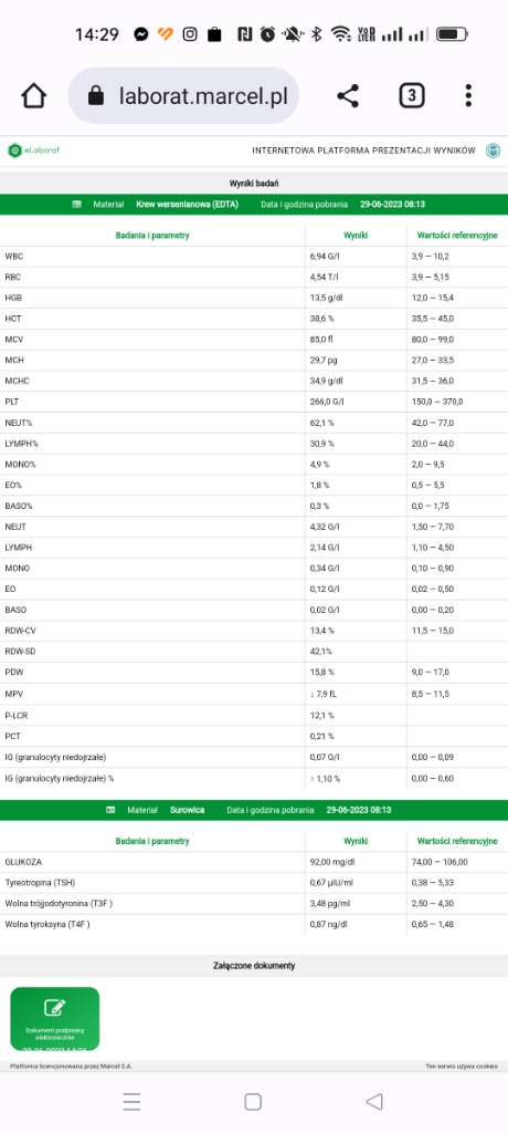 Jeszcze mam pytanie co sądzicie o wynikach badań bo tarczyca mi spadła TSH z 0.82 w dół![]()