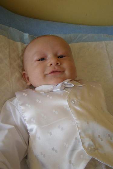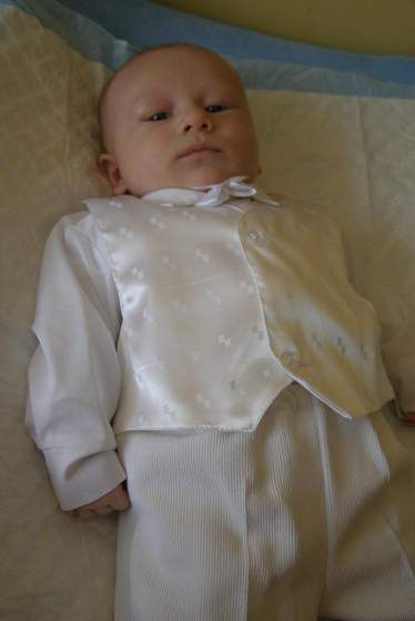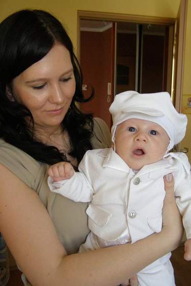 Co do kosciola, moja spala najpierw wozku, pozniej musielismy ja na wprowadzenie wyciagnac too salej spala u m na rekach.Przy przebudzeniu troszke poplakala.No i musiala byc u nas na rekach w pozycji na siedzaca bo lezacej nie toleruje juz.Przy wodzie tylko sie troszke zbulwersowala i spojrzala na ksiedza.Jak zadawal nam pytania to z nami odpowiadala