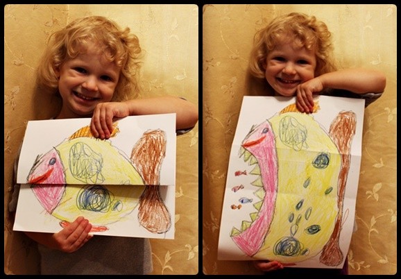 Wczoraj z tego blogu robiłyśmy eksperyment z olejem o octem, a dziś z wędrującą wodą , a i pomysł z namalowaną rybka też dziś zrobiłyśmy. Zresztą ja wiele inspiracji od niej zaczerpnęłam