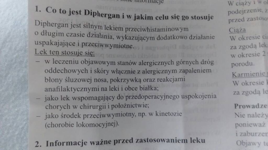 Diphergan dostalas na spanie? Przeciez to lek na uklad oddechowy czyli stosowany przy astmie, niezycie nosa itp. Chyba ze zle Cie zrozumialam.