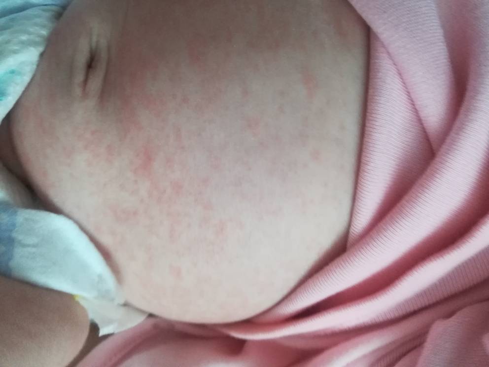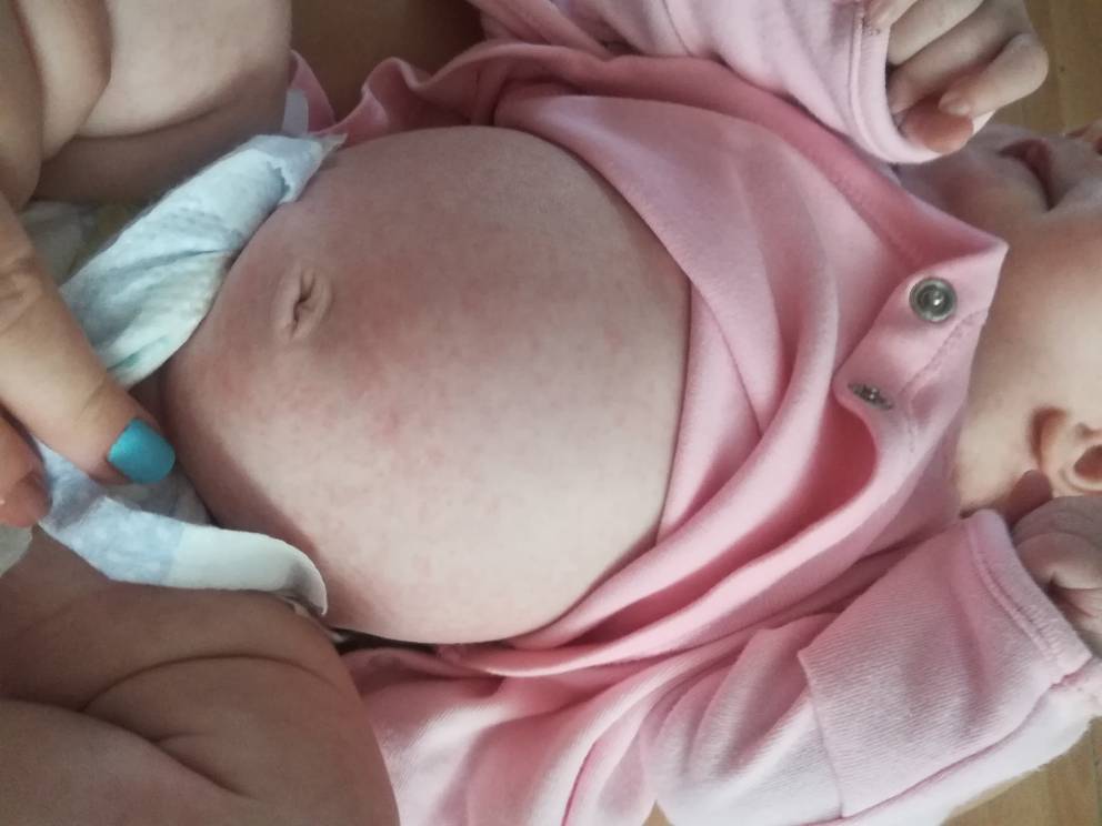Używam pampersow dada ale zakładam jej też oryginalne pampers bo dostaliśmy może od tego? Nie pieluszkuje, bo bioderka mamy dopiero za 2 tygodnie. Ale ma tylko na brzuszku, pupie i udach.Ciężko stwierdzić... inaczej na fotce inaczej w realu... Może alergia, potówki... Odparzenie? Pieluszkujesz szeroko małą?