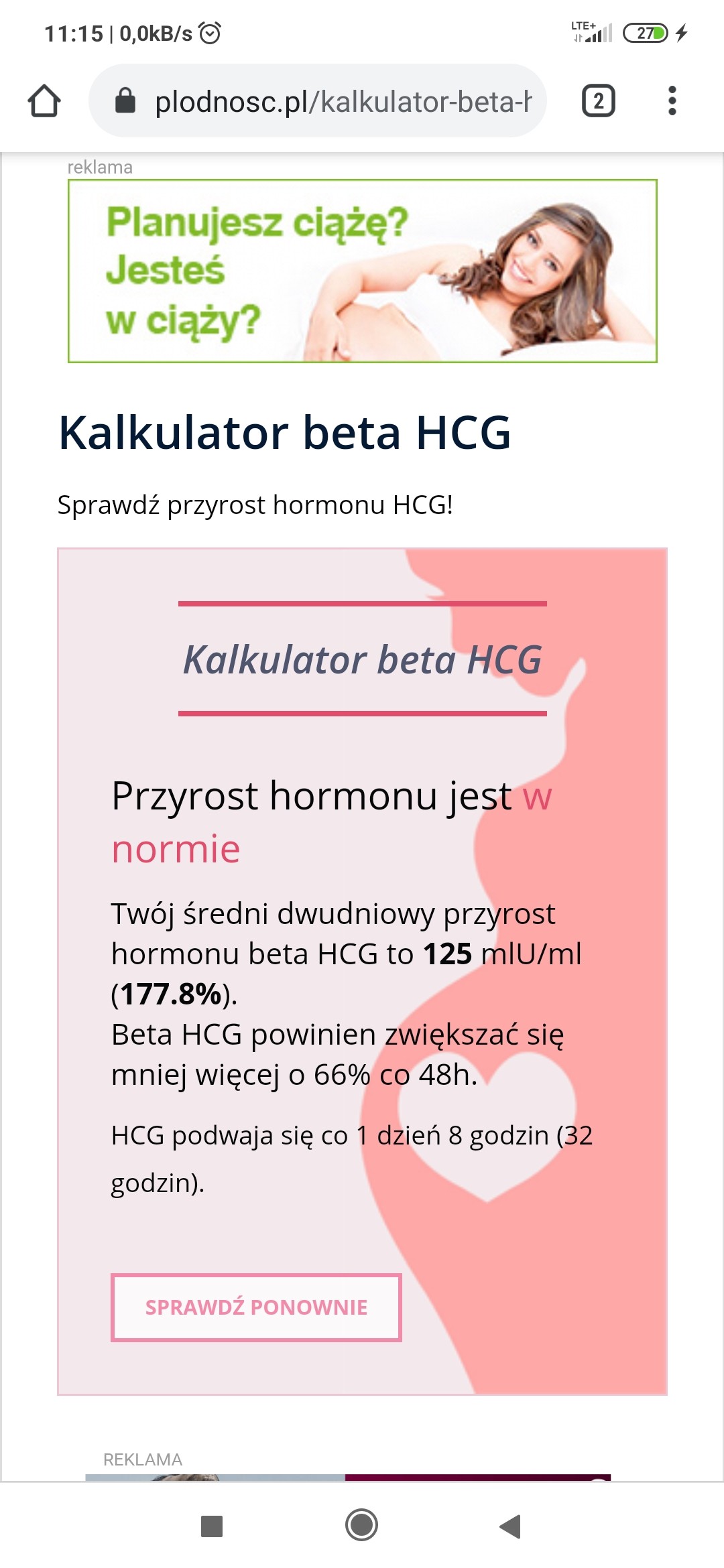 Może wpisz swoje daty badań i wartości w kalkulator, tam wychodzi Link do: Kalkulator beta HCG | Plodnosc.plNiby w normie, 178% przyrost dwu dniowy.