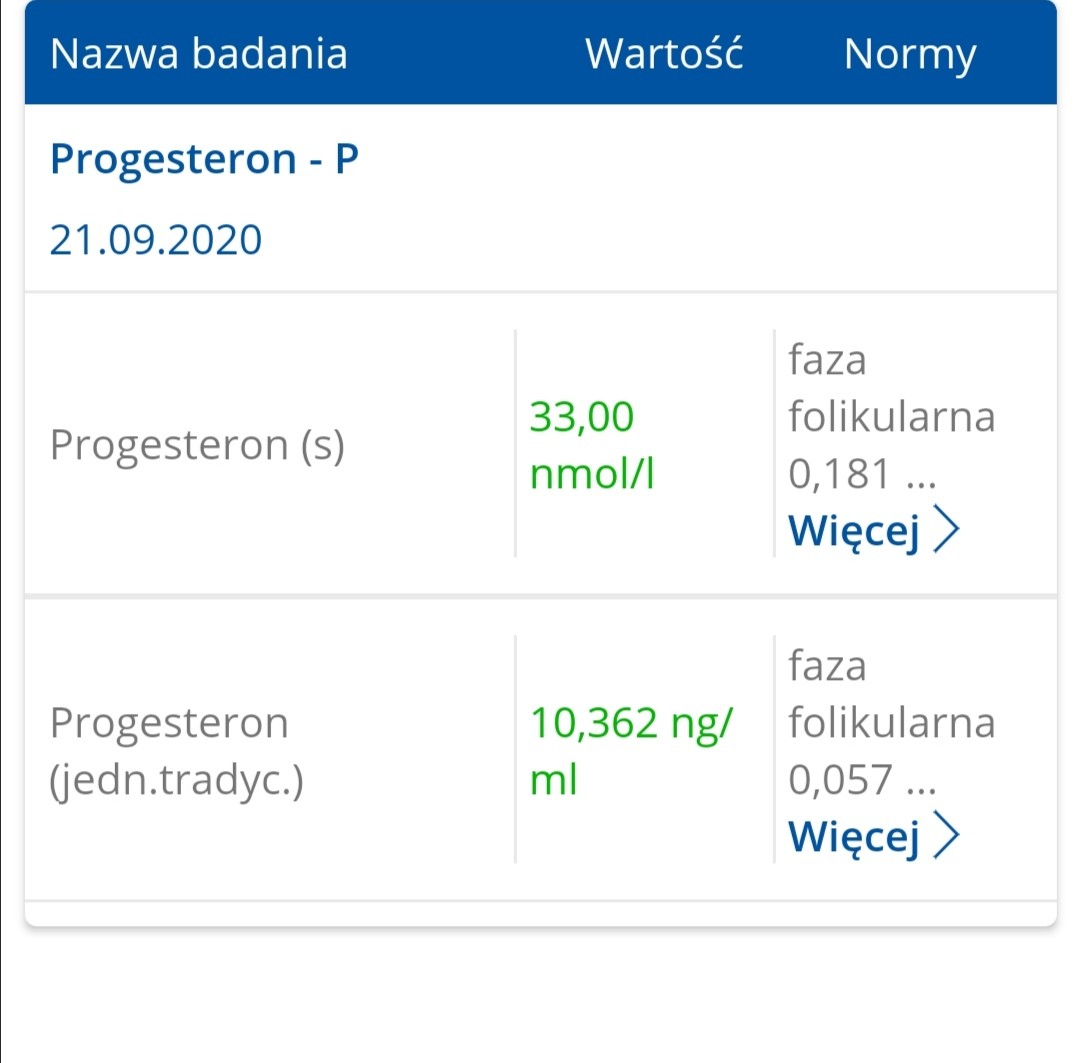 Sprawdziłam jeszcze raz w wynikach. Mam w dwóch normach. Druga jest od 11 a ja mam 10.365, jakoś tak. Czyli dolna granica. Lekarka odpisała. "Duphaston ratuje sytuację". Także tak.Jak tak to nie mam pytańale jest to bardzo ciekawe, że taki rozrzut jest he he