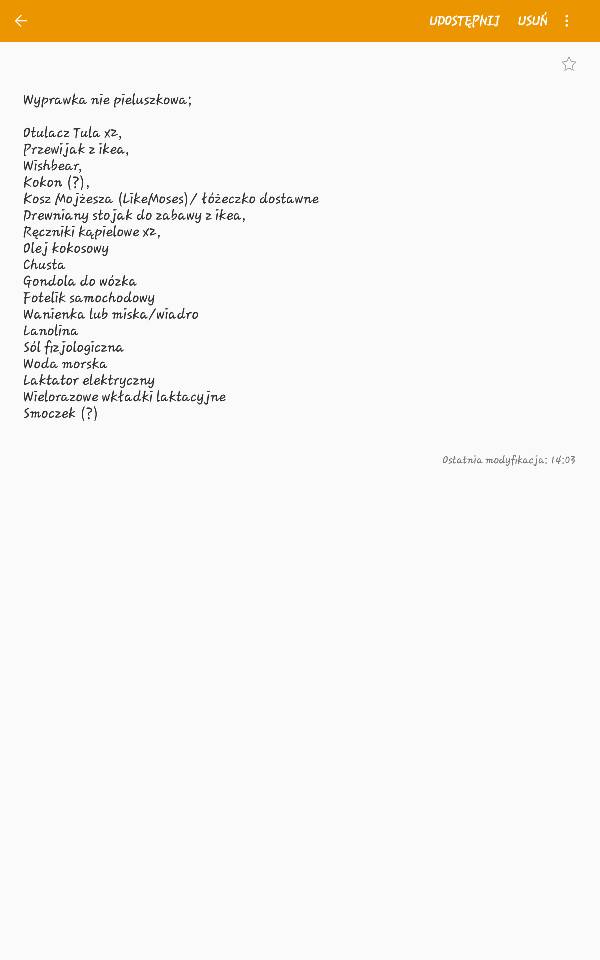 A to moja lista, możliwe że jeszcze coś dojdzie. Nie ma tam oczywiście ubranek i w moim przypadku pieluszek wielorazowych.