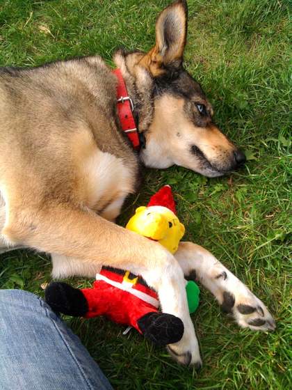 Jeśli mowa o pieskach, w 2008 przygarnęliśmy ze schroniska krzyżówkę Haskiego z wilczarzem cechosłowackim.. kochany psiak :) Ma świra na punkcie dzieci, to pierwsza niania mojego synka. Niestety starzeje się i kto wie jak długo z nami jeszcze będzie. 309788_273096866047957_1091773029_n.jpg