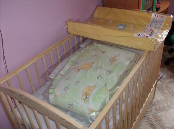 U nas łóżeczko też stoi rozłożone- nawet pościel ubrałam, ale jeszcze nie prałam. Upiore za jakiś czas. Przewijak też już zmontowany- my mamy niebieski ze ślimakami. Miałam kupować uniwersalne rzeczy, ale co poradzę, że niebieskie jakoś najbardziej mi podchodzą :baffled: