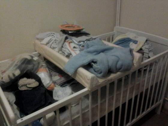 żeby mnie za bardzo w oczy nie kuło, to jeszcze przykryłam to prześcieradłem :-) stoi skręcony regał i komoda a w środku skarpetki tylko, mam lenia do prasowania jak diabli, nie wchodzę nawet do tego pokoju, żeby mieć mniejsze wyrzuty sumienia :-)