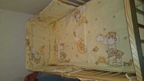 A ja dzisiaj rozlozylam łózeczko z mezemi Powiem Wam ze bylam mile zaskoczona. Obawaialam sie jakosci zakupu - za caly zestaw zaplacilam 400 zł ( w tym łózeczko, materac, posciel i wklady, przescieradlo, baldachim i stelaz, ochraniacz, rozek i organizer i jeszcze bieguny zakladane na nogi od łozeczka). Wszystko nowe. Jakos materiałów normalna - nie sząłowo