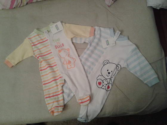 W myśl zasady jak jest nie na 100% potwierdzona dziewczynka - to nie kupujemy różowości, zakupiliśmy w mothercare takie oto śpiochy