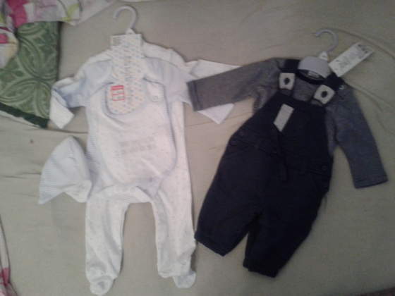 I tak pojechaliśmy dziś z mężem po zakupy jedzeniowe na święta i rajstopy ciążowe , żebym mogła ładnie w sukience się na wigilli prezentowć, a wróciliśmy z pierwszym małym zakupem dla maluszka - trójpakiem śpioszków