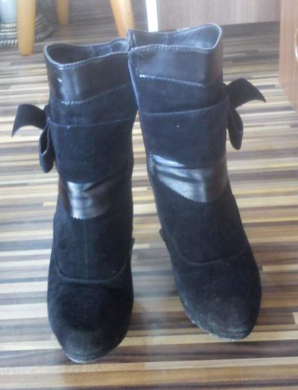 Ja na chwilę obecną mam takie botki, wygrzebałam z szafy, kupiłam w styczniu na chrzciny które miały być w lutym ale w końcu były w marcu i poszłam w pantoflach, więc botki mało chodzone, ale na srogą zime się nie nadają. (przepraszam za błotko na obcasie ale u nas mokro dziś rano było).