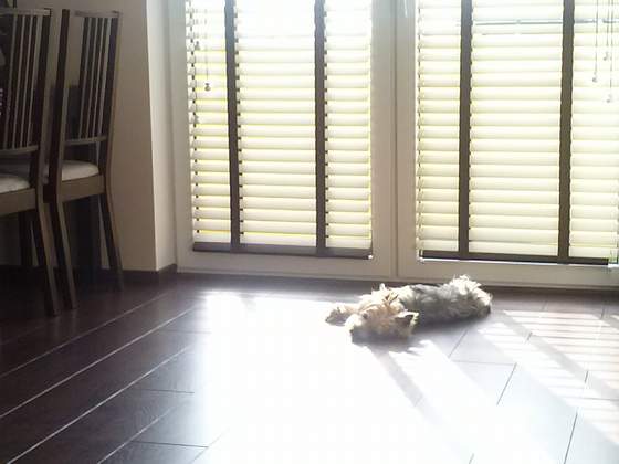 U nas po zachmurzonym weekendzie wyszło piękne słoneczko :-) z Kubusiem już ok dostaje jeszcze tabletki ale już widać że lepiej się czuję :-) wygrzewa się na słoneczku wchodzącym do domku :-)